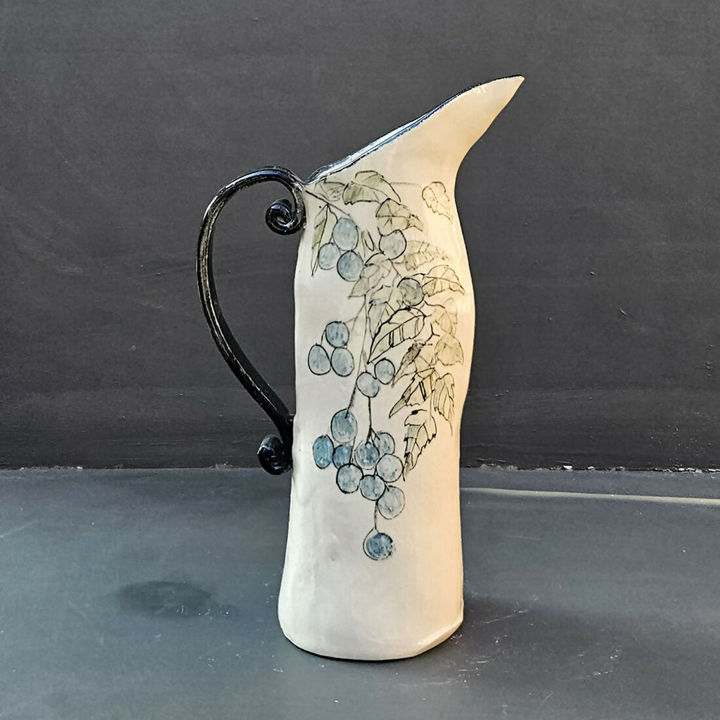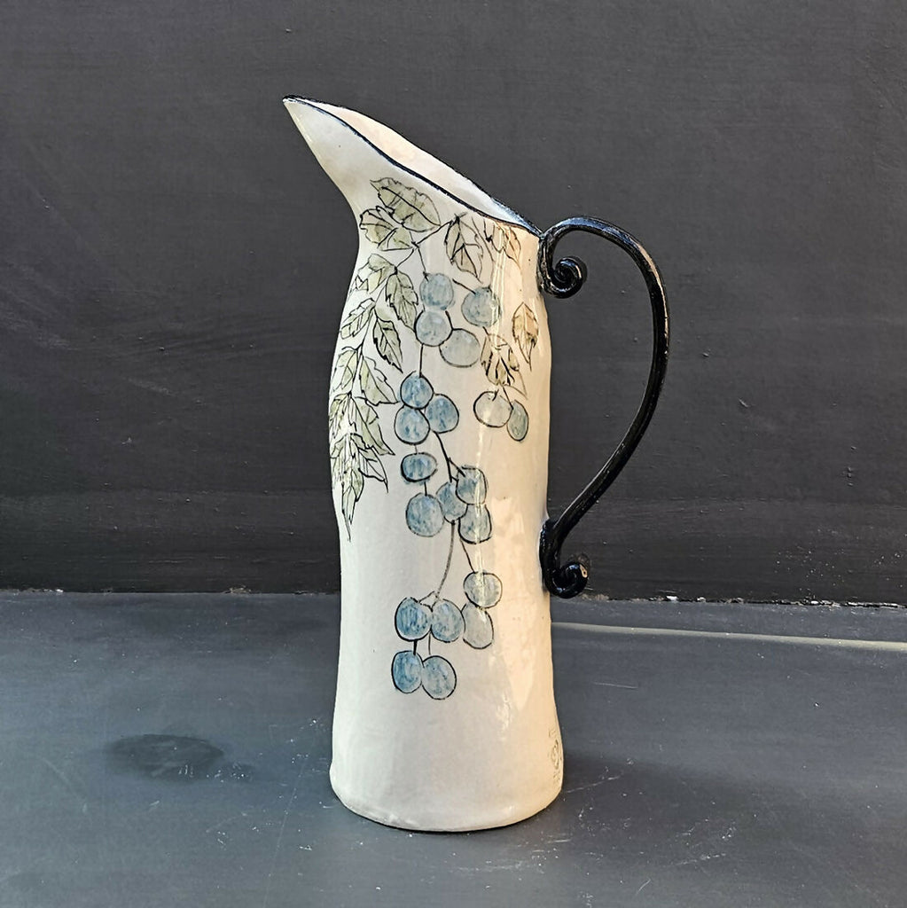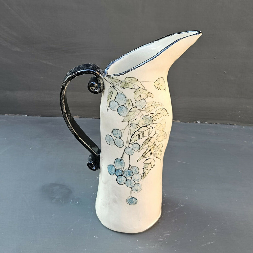 Stoneware glazed jug with hand-painted design by Kathleen Hepworth