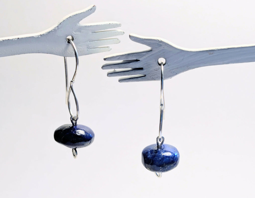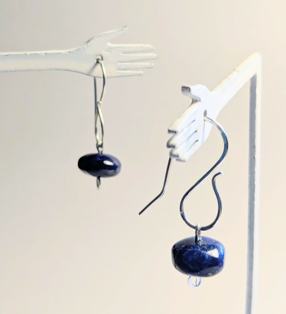 Signature style Sterling Silver earrings with some very striking deep blue polished Lapis Lazuli gemstones.