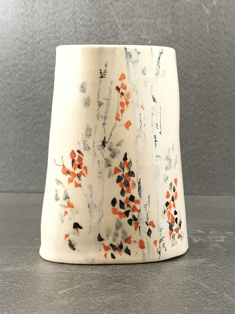 Stoneware vase with hand-painted design by Kathleen Hepworth