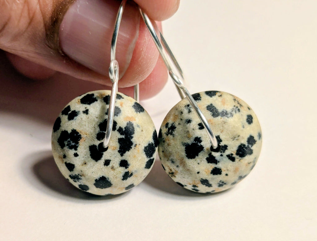 These earrings are made using spotty Dalmatian 🐕 Jasper rondelle gem beads & Eco Sterling Silver wire.