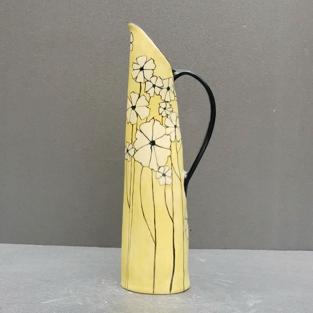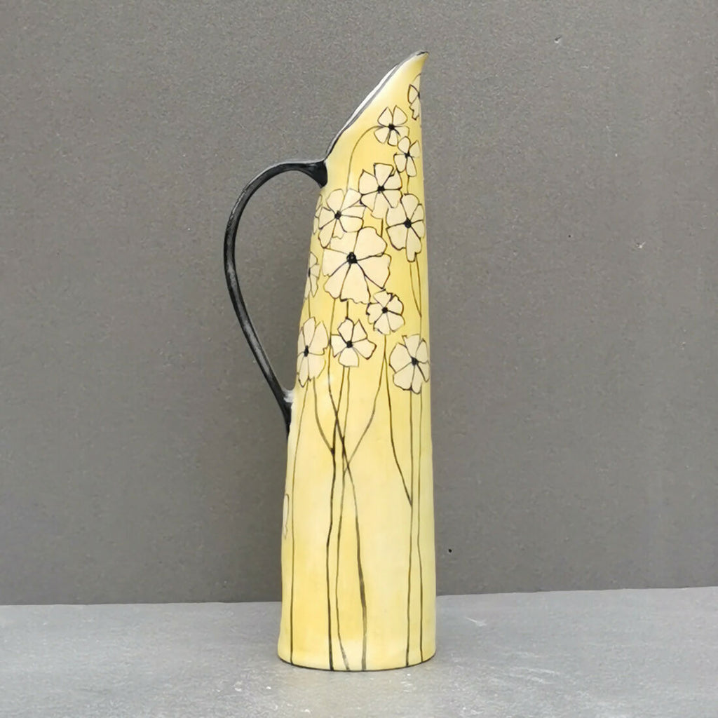 Stoneware jug with hand-painted design by Kathleen Hepworth