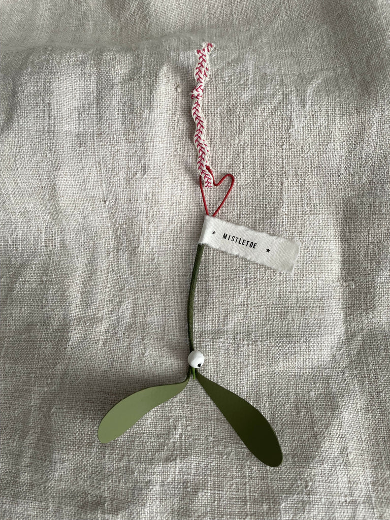 Handmade hanging mistletoe made of crepe paper, watercolour paper and air dried clay, with a wire structure. Hand painted and individually made.