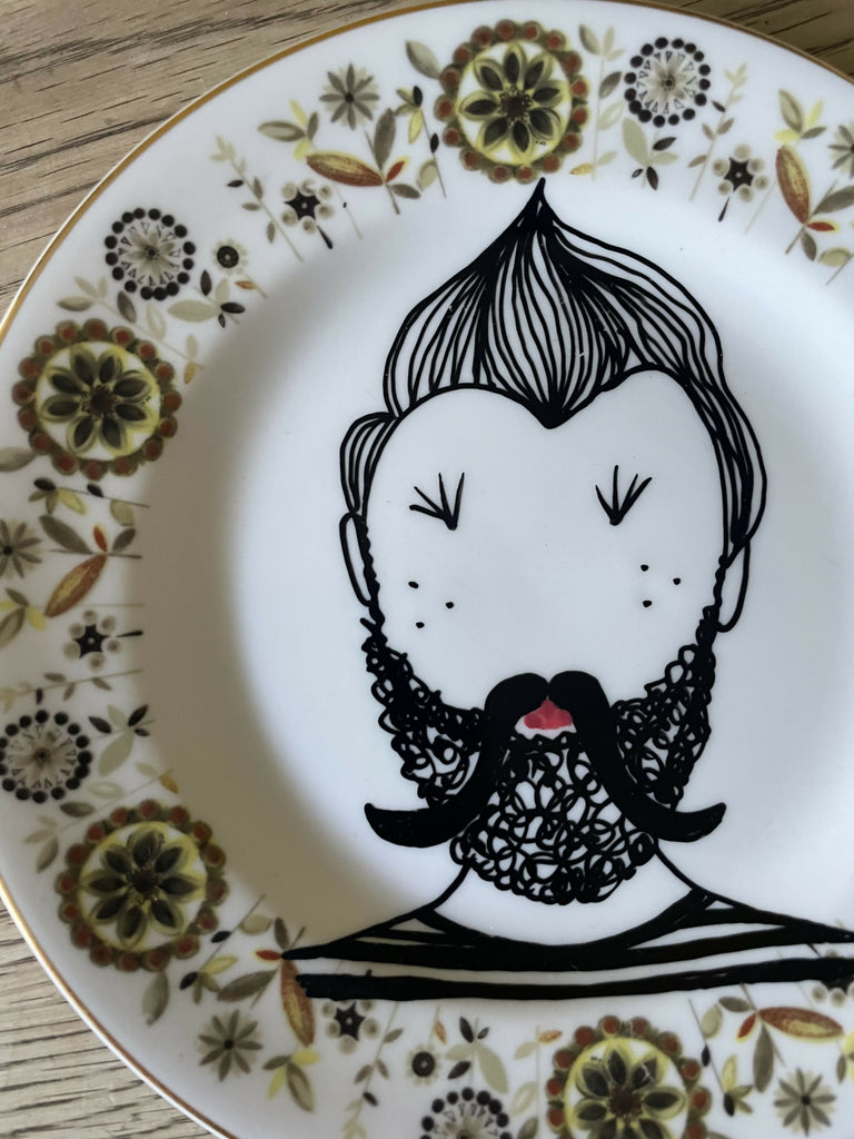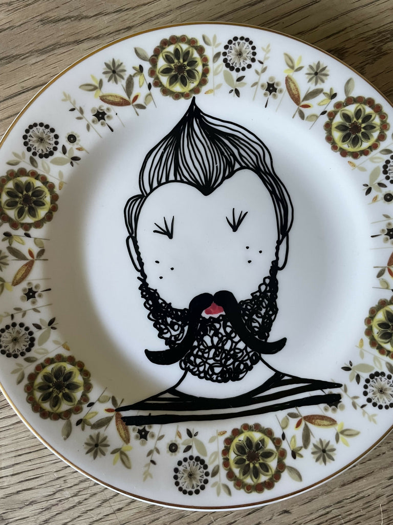 PETE. One off, original design illustrated on a vintage plate by me, designer Carolyne Collins. Each hand picked, hand painted plate is unique, any slight flaw you may find on the plates, are due to the plates vintage quality, and are incorporated into the illustration, bringing vintage & modern together to create an amazing, quirky fun piece that will brighten any room in your house! Each plate arrives in a beautiful box, makes a lovely gift for you or a friend.