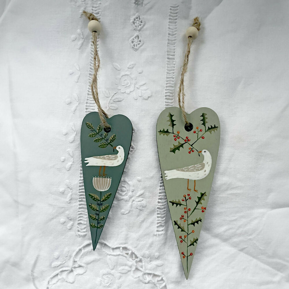Peace Dove with Holly - Wooden Hanging Decoration