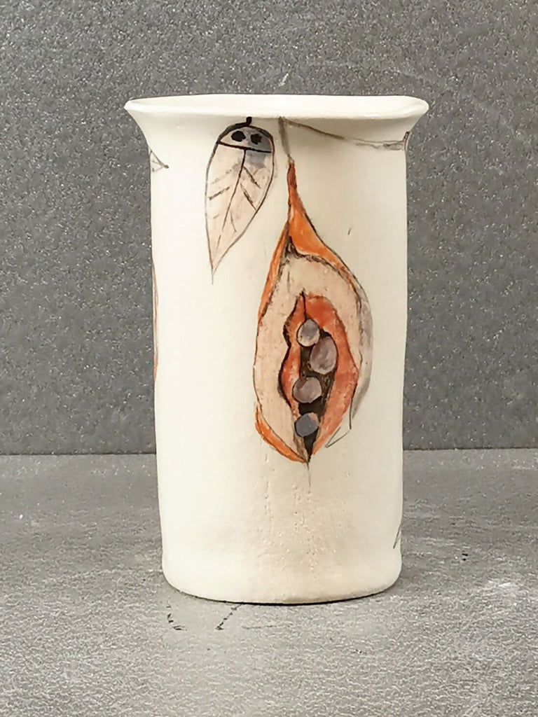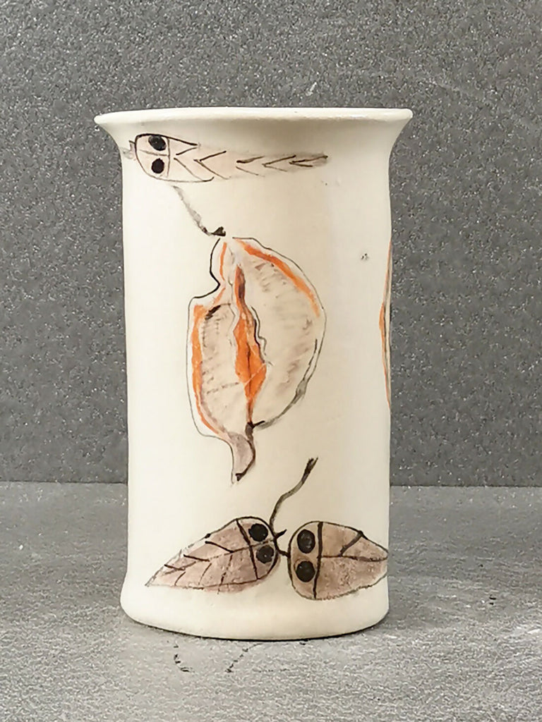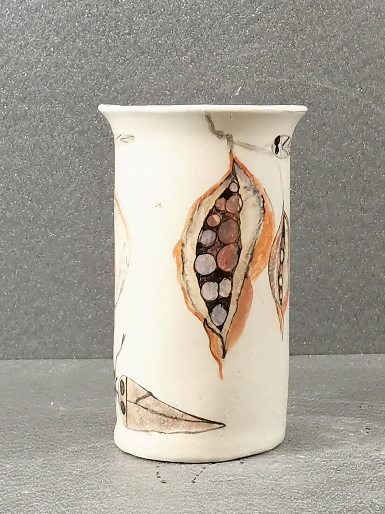 Stoneware vase / beaker with hand-painted design by Kathleen Hepworth
