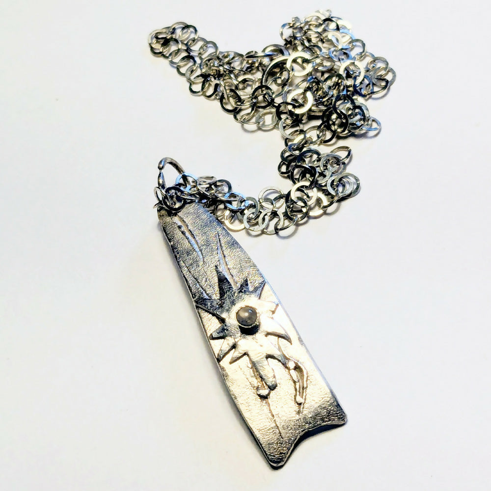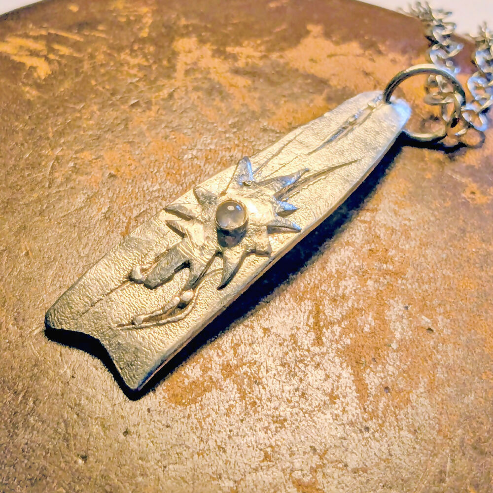 The Shooting Star Pendant is made from textured Eco Sterling Silver. The reticulation heating method has been used to create an organic look & feel to the piece.