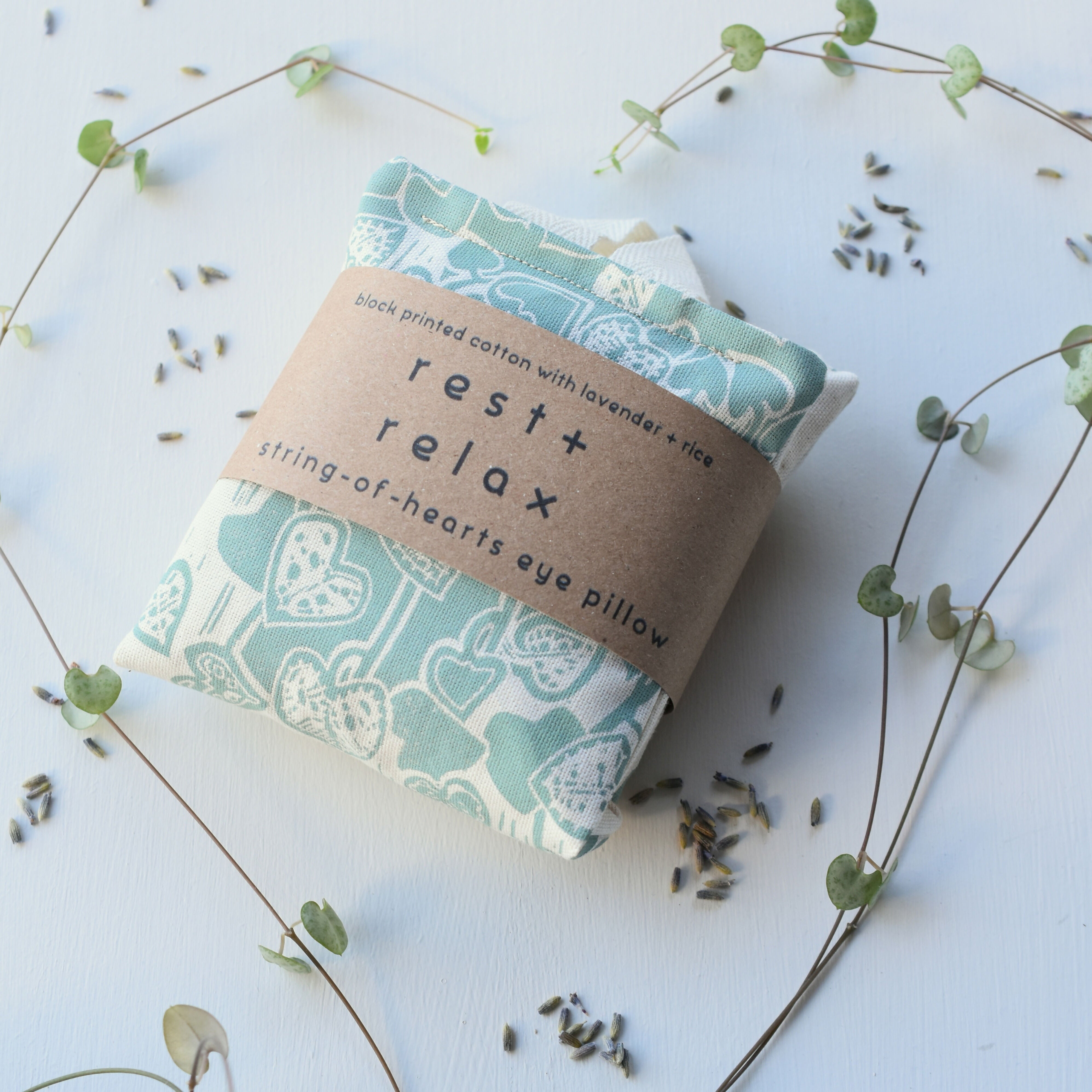 Rest + relax - heat in the microwave for 1 minute only, place on your forehead or eye lids + enjoy the soothing scent + warmth to help relax + relieve those tension headaches + tired eyes.