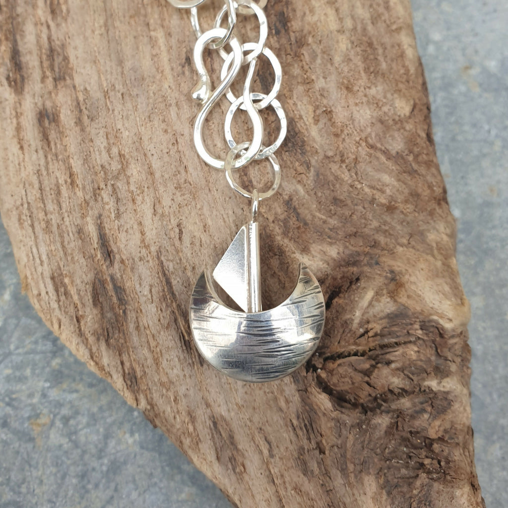 MEASUREMENTS: Sailing boat 20mm across at its widest point and 28mm high. Chain measures 18" (45cm) including the hook