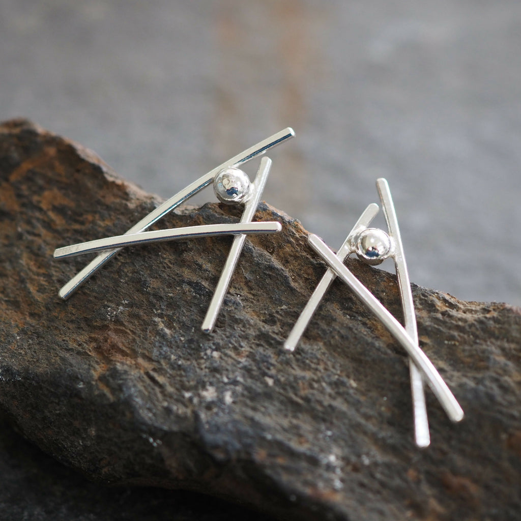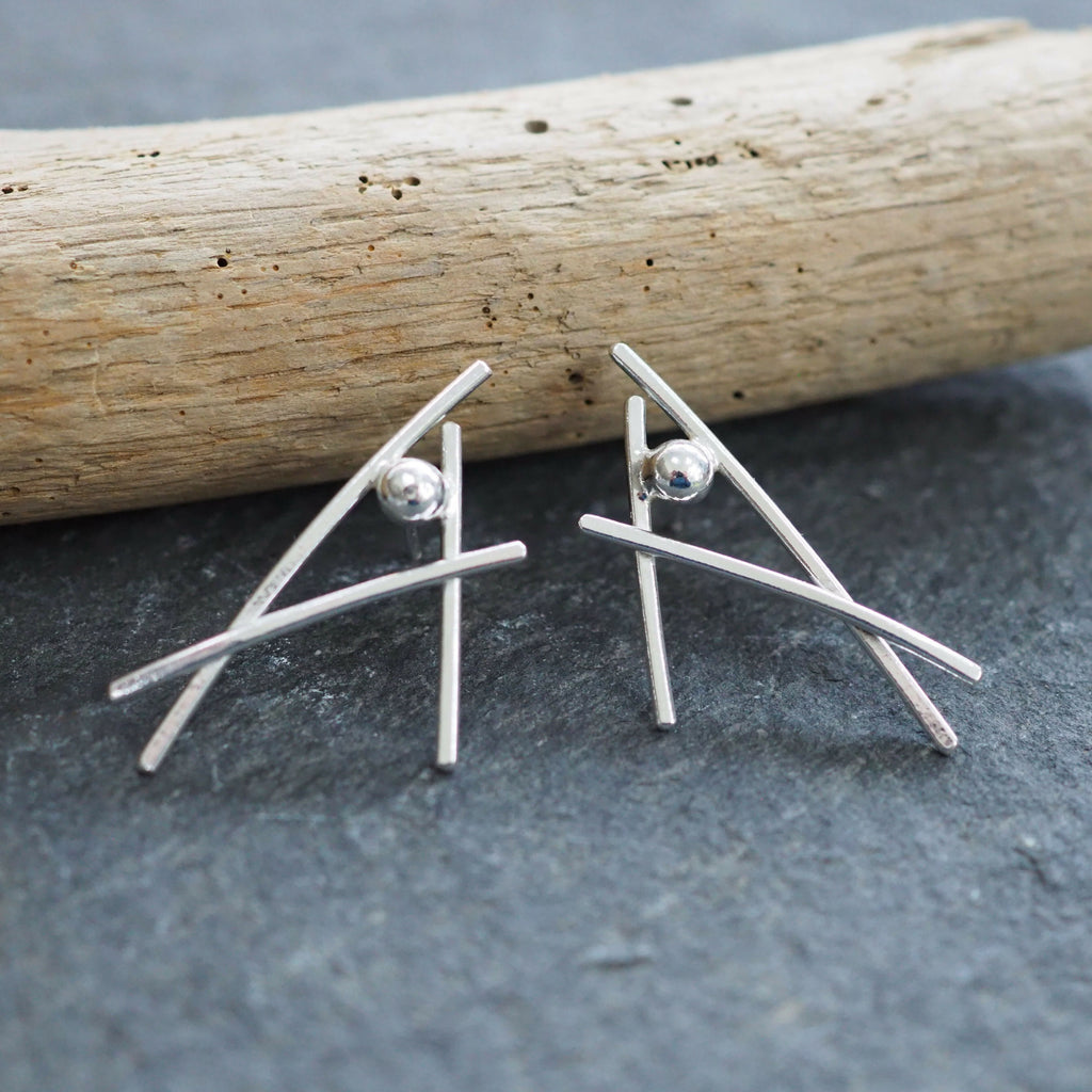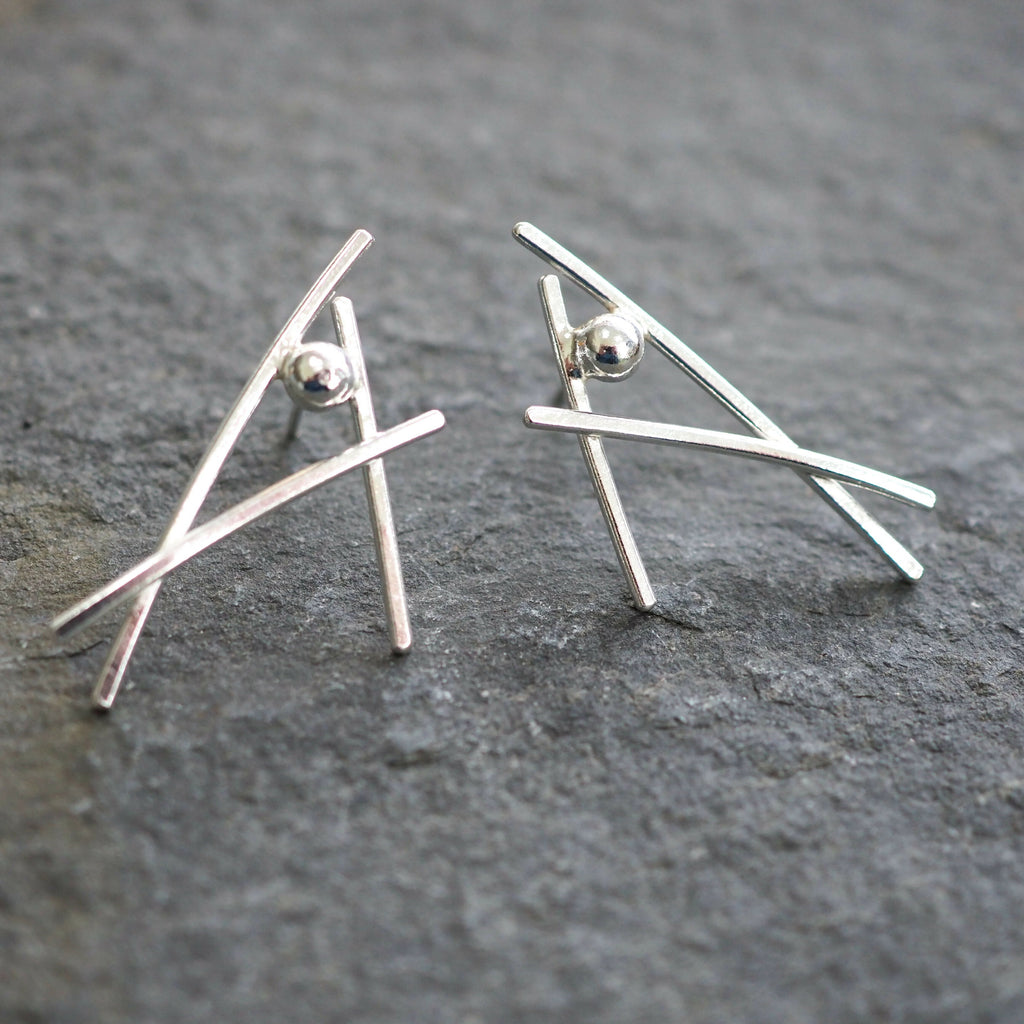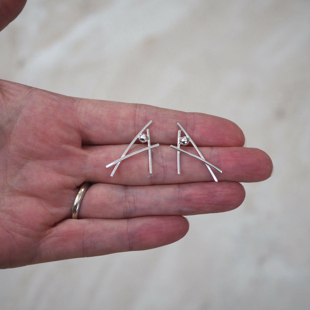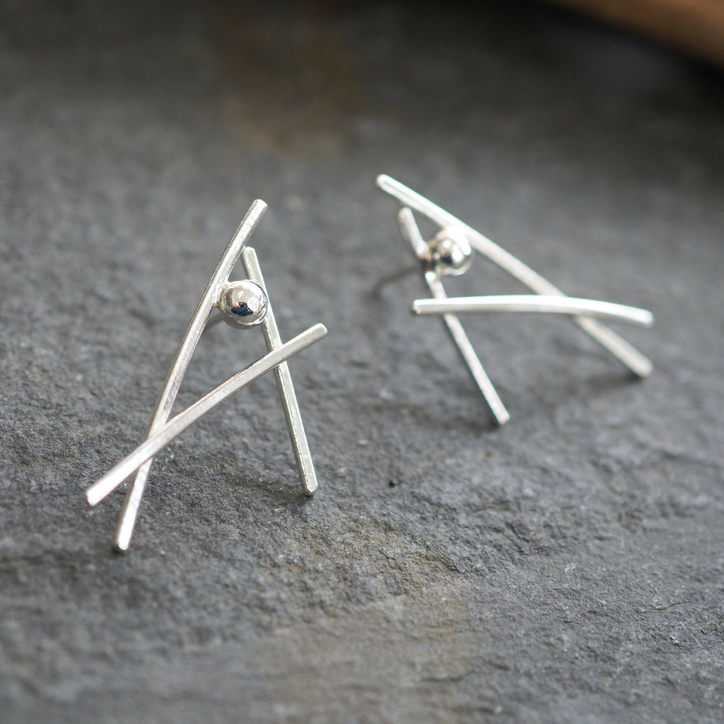 Sculptural A shaped silver stud earrings hand crafted from quality Argentium silver 940.