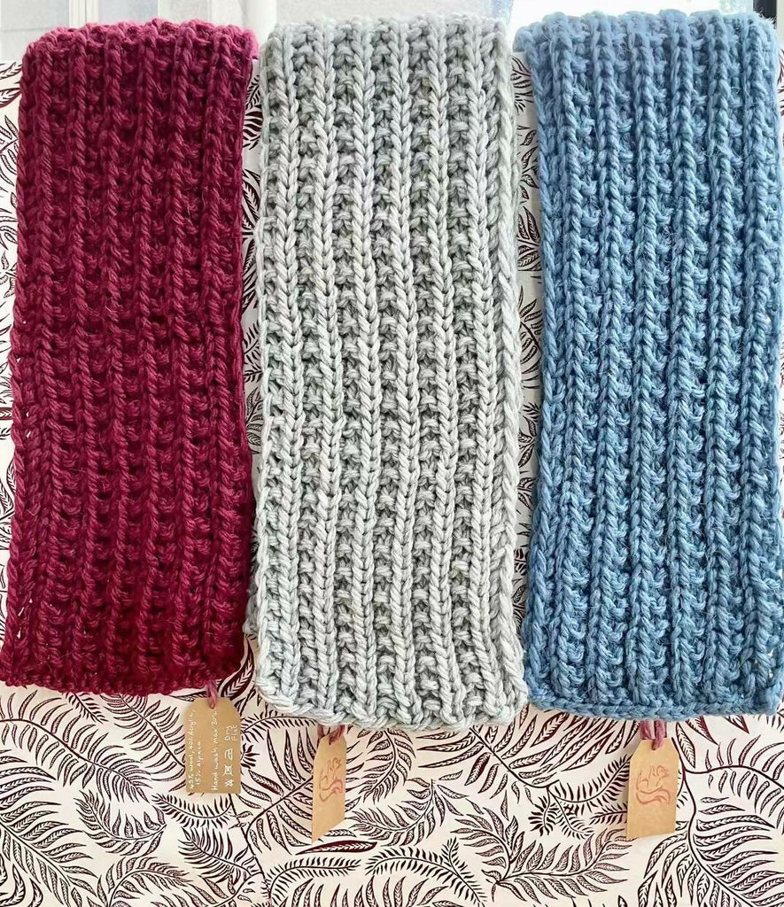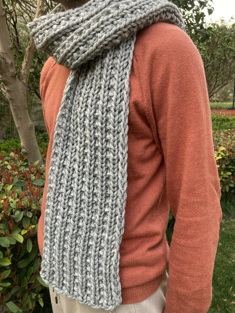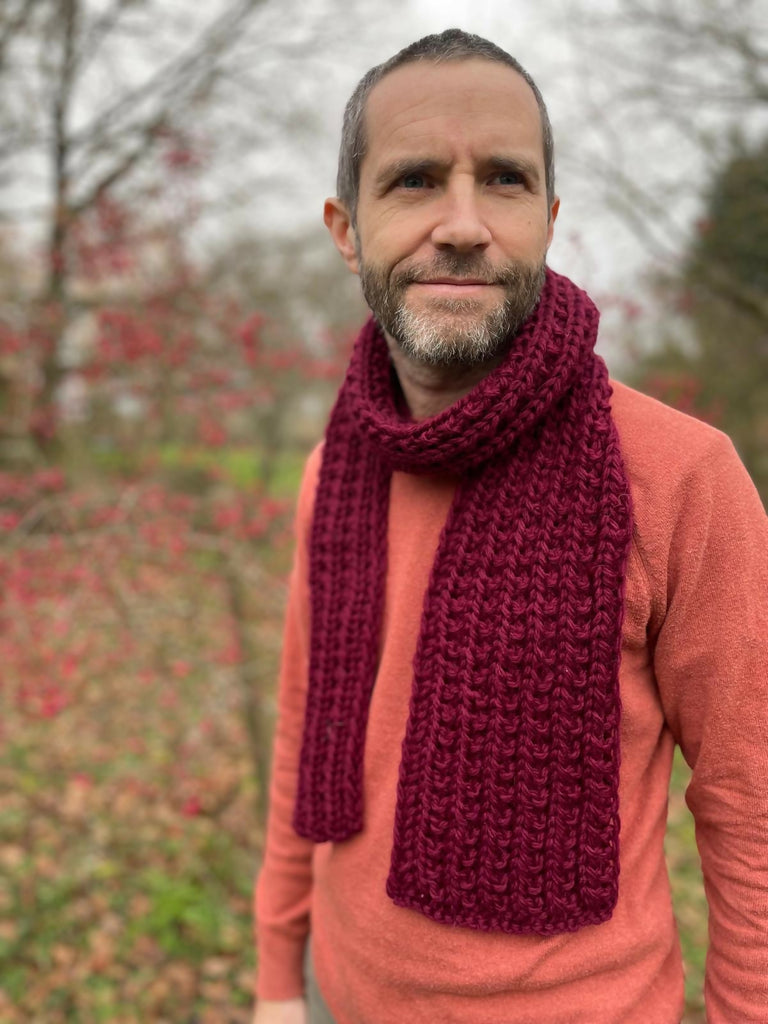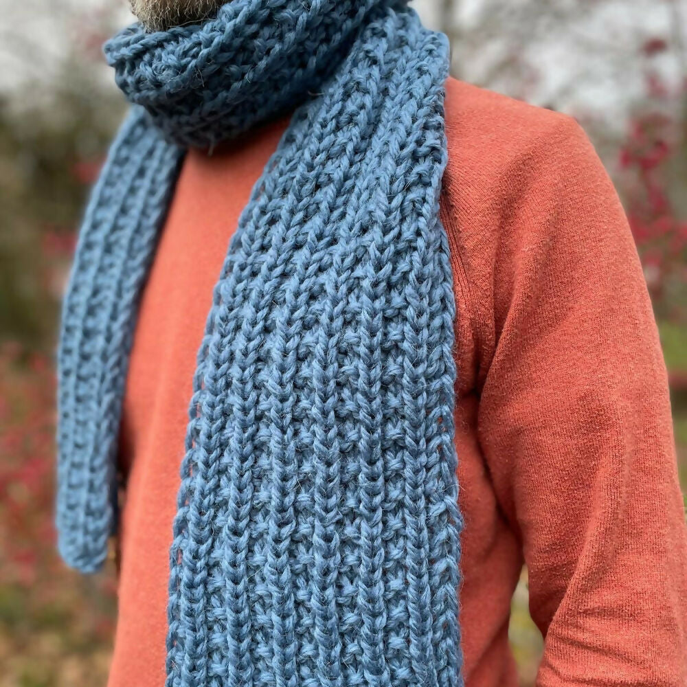 Soft, chunky and gorgeous. This hand knitted ribbed scarf has been hand knitted from a chunky wool blend (45% sheeps wool, 40% acrylic, 15% alpaca). It is 1.5 m long and comes in 3 colours, light grey, wine red and light blue. These scarves are really warm and soft to wear, perfect for a cold winter morning and they make a lovely gift for someone special!