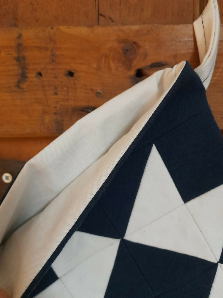 Made with a cotton, linen mix fabric and has a cotton lining.