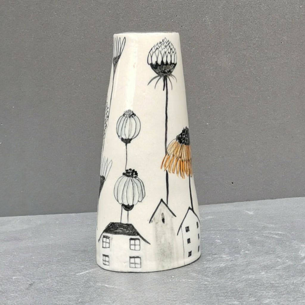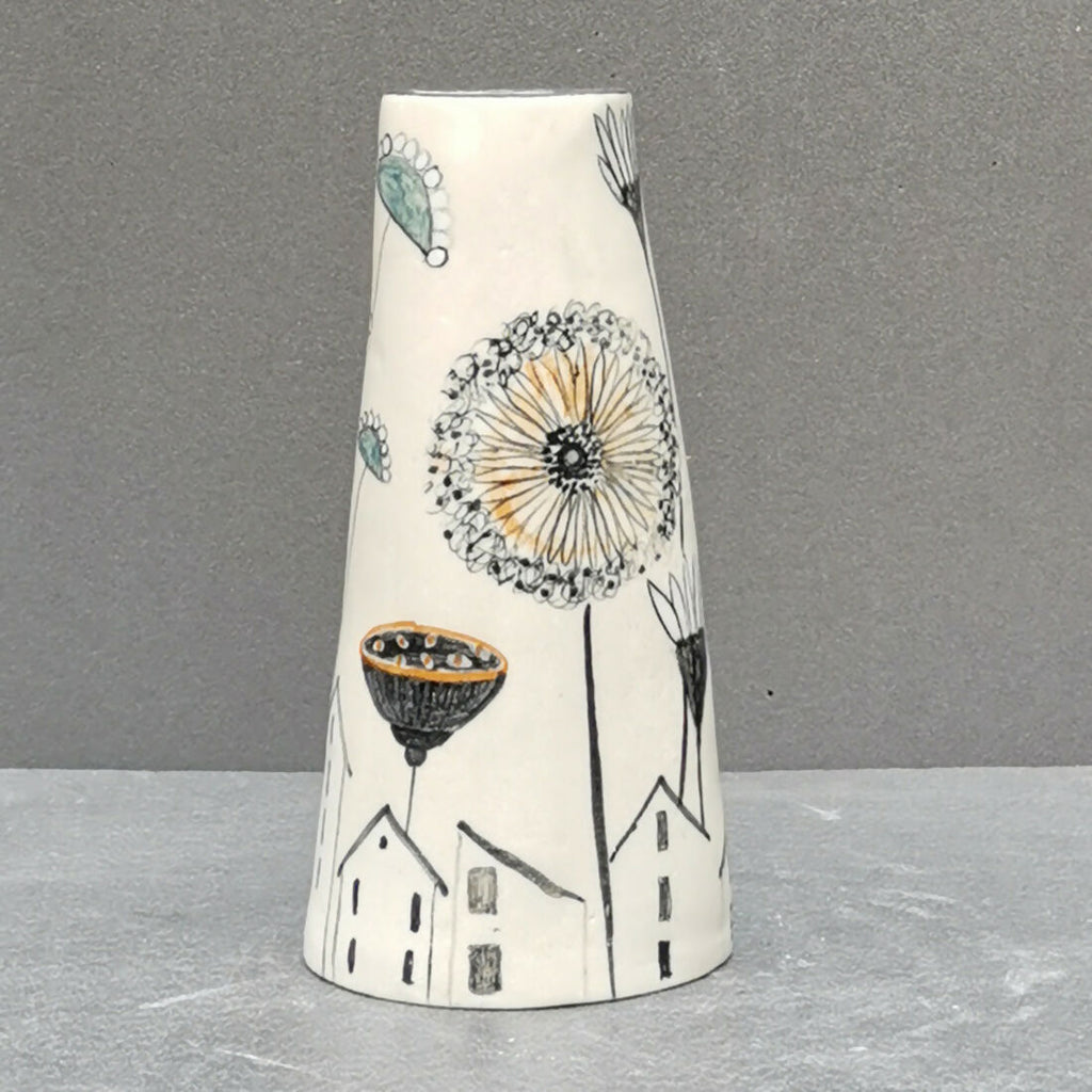 Stoneware vase with hand-painted design by Kathleen Hepworth