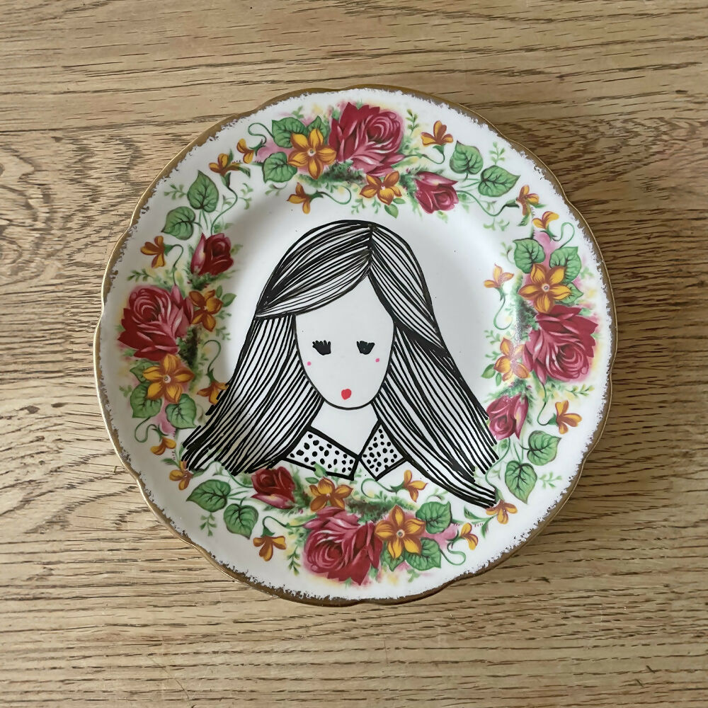 ANNA. One off, original design illustrated on a vintage plate by me, designer Carolyne Collins. Each hand picked, hand painted plate is unique, any slight flaw you may find on the plates, are due to the plates vintage quality, and are incorporated into the illustration, bringing vintage & modern together to create an amazing, quirky fun piece that will brighten any room in your house! Each plate arrives in a beautiful box, makes a lovely gift for you or a friend.
