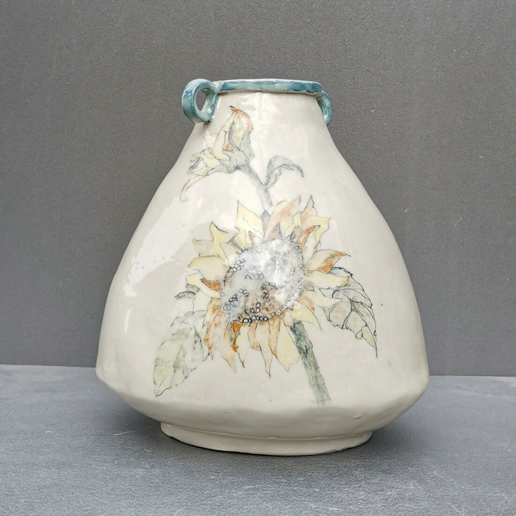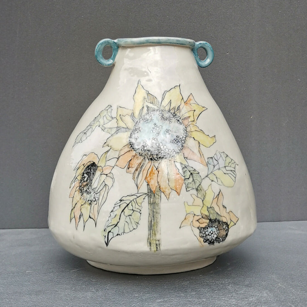 Stoneware vase with hand-painted design by Kathleen Hepworth